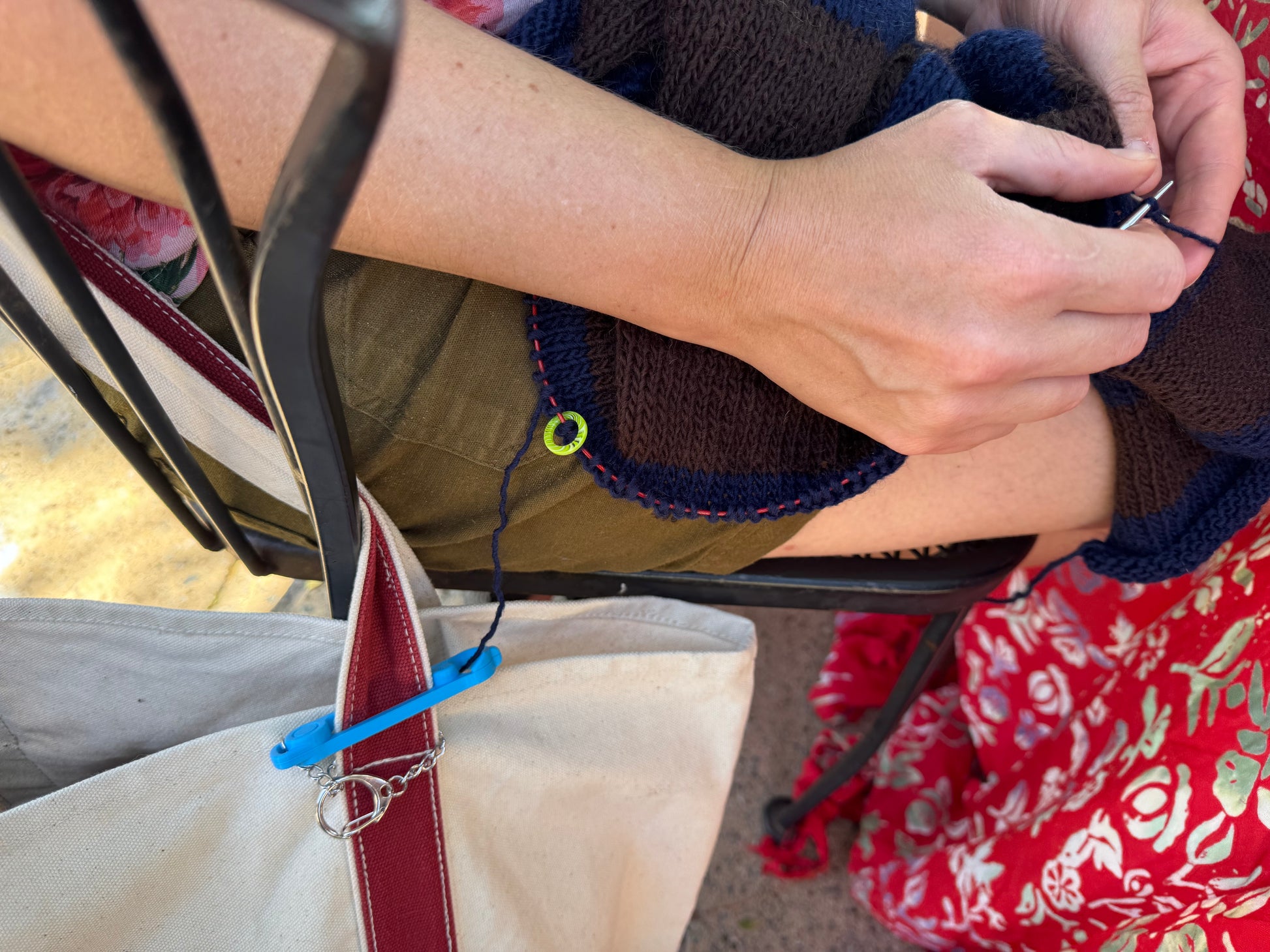 Working with multiple strands for colorwork? Keep your yarn from tangling together by using multiple Tangle Tamers. For best results, attach each Tangle Tamer to different bag handle sections.