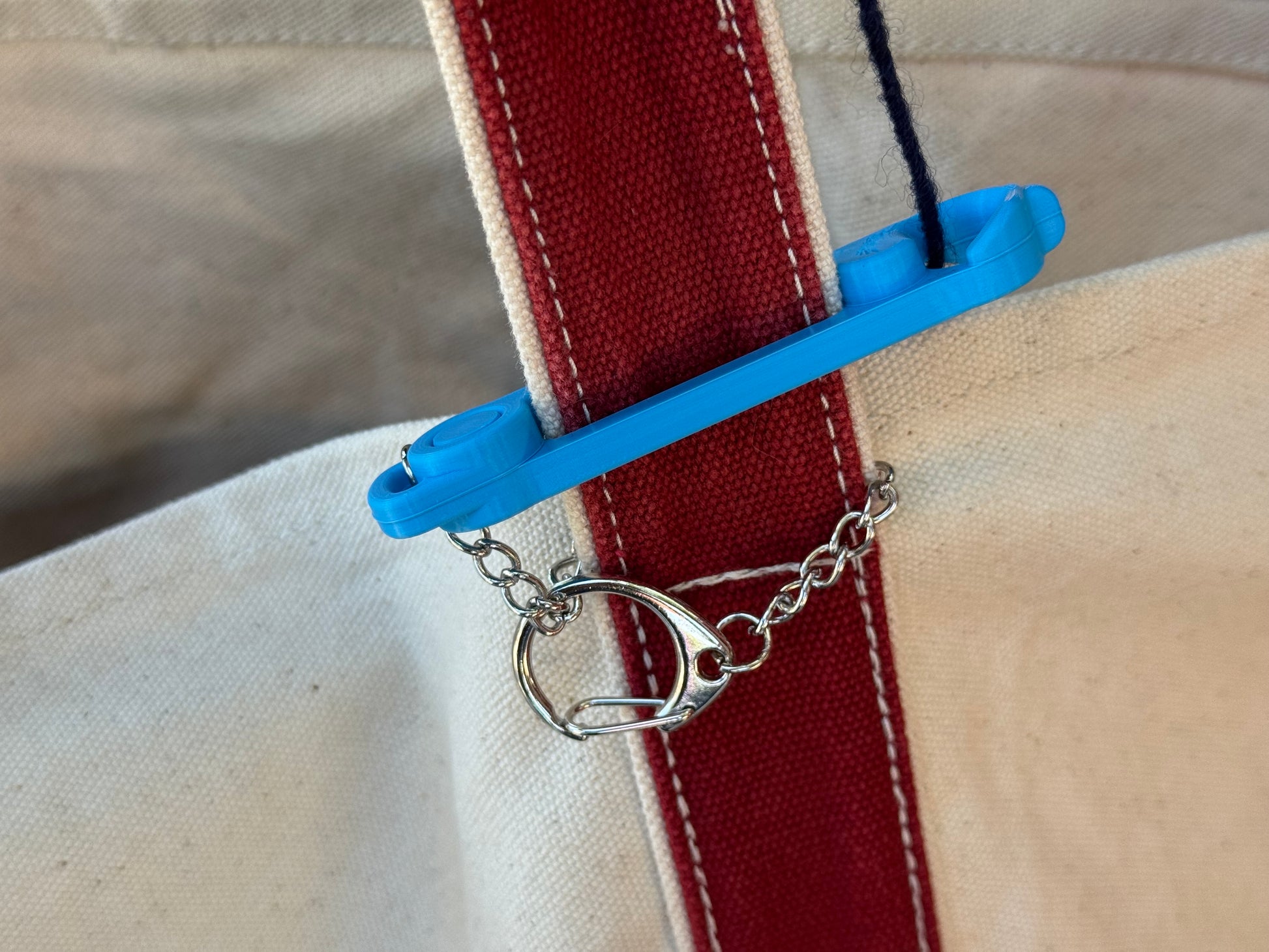 The strong magnets built into the Tangle Tamer keep it securely on your bag and around your yarn. It also comes with a built-in loop to attach a chain, lanyard, or even scrap yarn to securely attach it to your project bag handle, just in case the Tangle Tamer is accidentally opened.